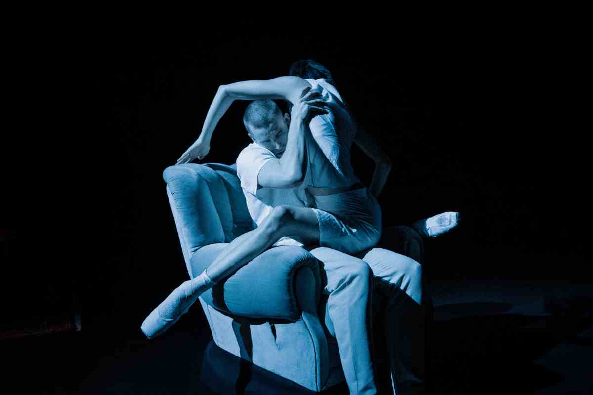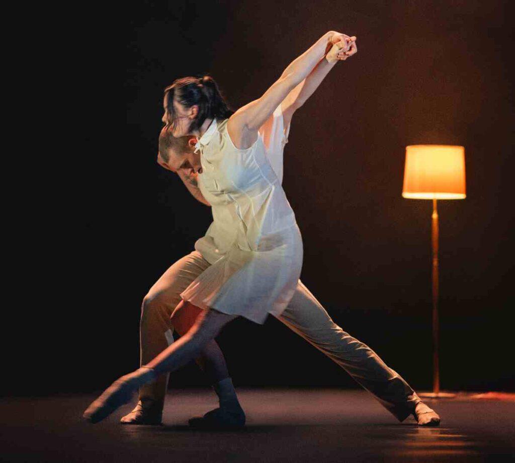 Foto 2: Scenen er fotografisk i Lorenzo di Loretos “You, Luciform”, et billede af ensom og længsel, der fortolkes af Lania Atkins og Jimmy Coleman. Fotograf: Camilla Winther.